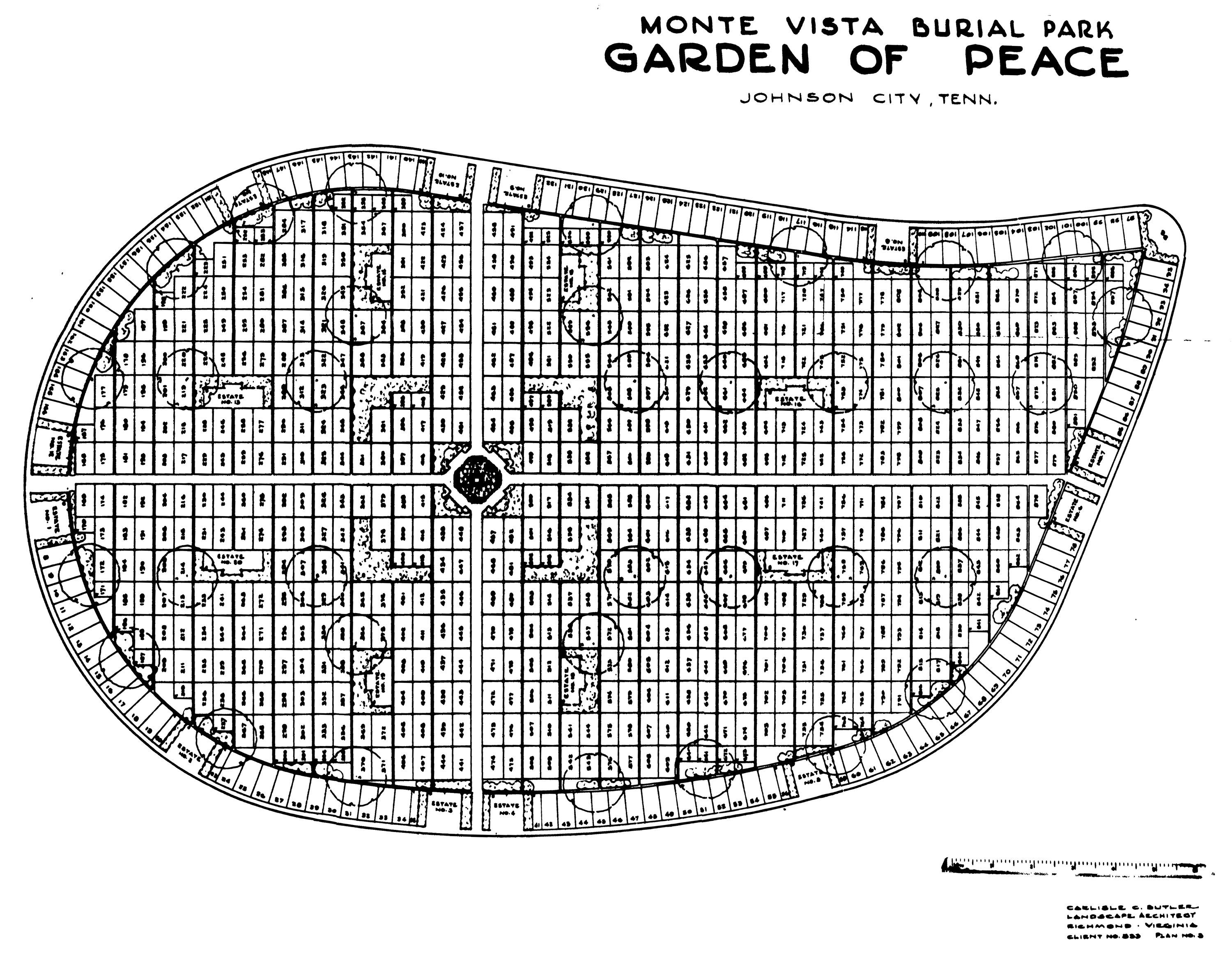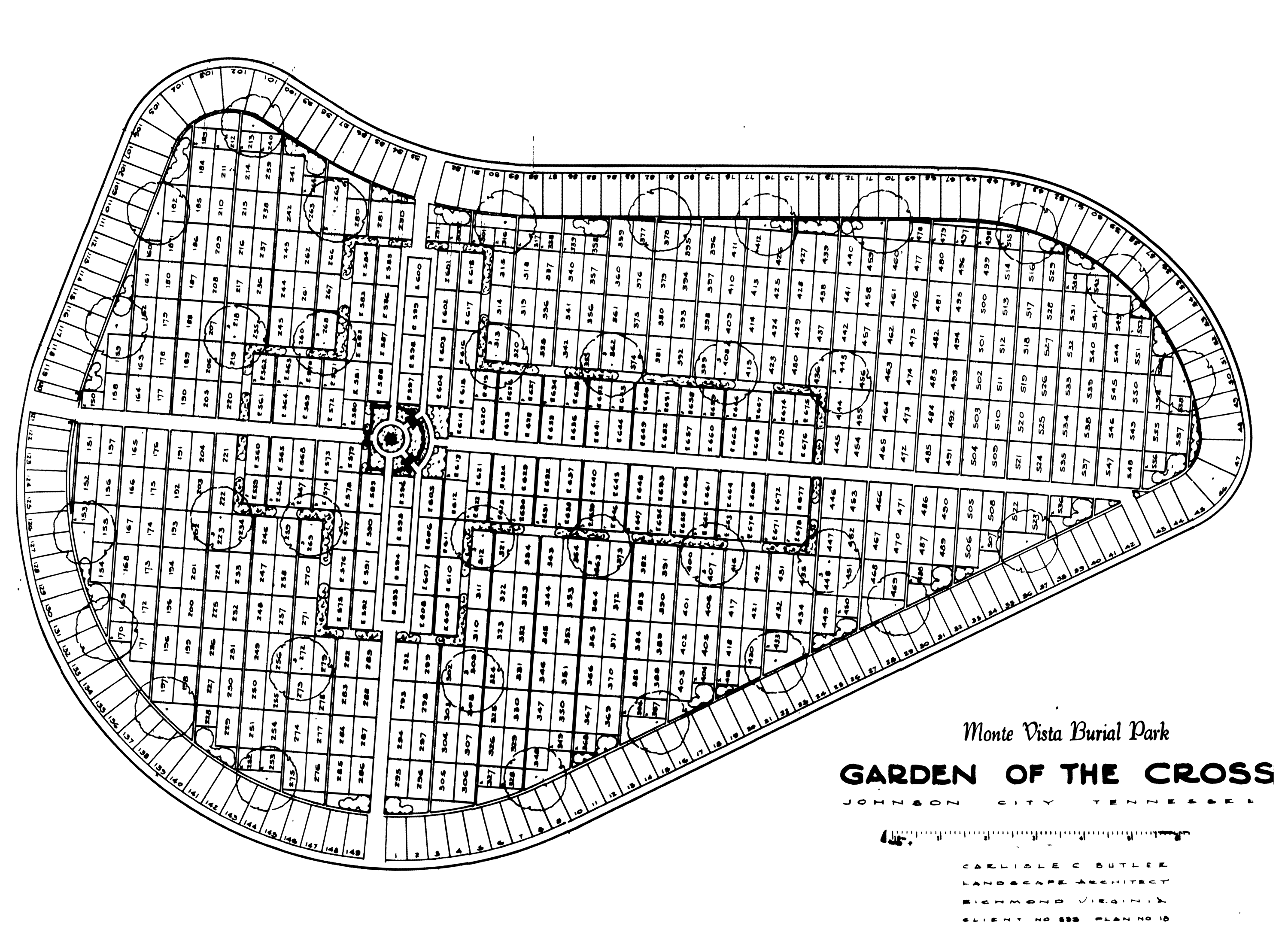- Garden of Peace (originally Section C) First sculptured/modern section implemented 1955 Plot Plan